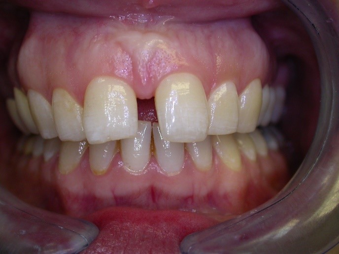 Tvar zubů dělá veliký rozdíl pro estetiku Vašeho úsměvu. Rádi pro Vás takovou změnu uděláme. Úprava diastematu, tedy mezery mezi předními zuby, fotokompozitním materiálem z volné ruky.